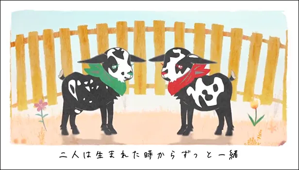 実物の双子ヤギをモチーフにしたアニメーションの一コマ