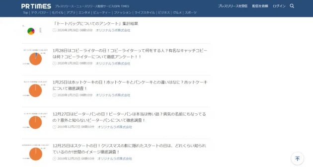 プレスリリース配信の際に使用するアンケートが多いですね。