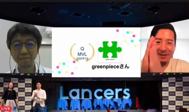 greenpieceさんにもオンラインを通じてご出演いただきました。そのニックネームの由来や、お仕事に対する思い、ランサーズへの期待のお話をいただきました。