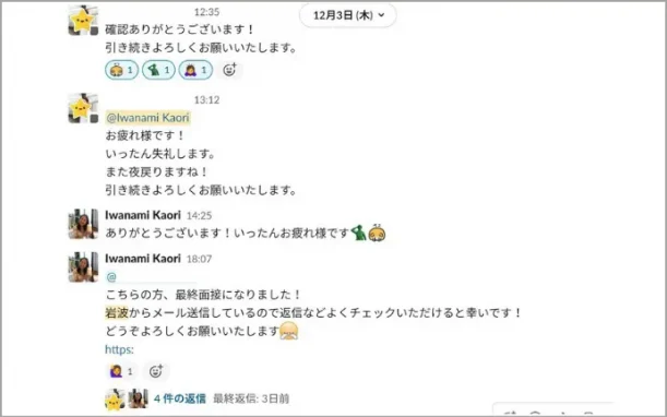 すべての業務オンラインで行っていただいているので実はまだ一度もお会いしたことがありません。だからこそこまめなコミュニケーションを心がけています。
