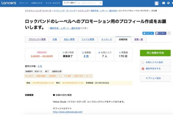 ――今回はクラウドソーシングのランサーズを利用されたということでお伺いしたのですが、サービスがミュージシャン界隈でも有名になってきているのですか?