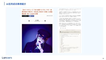 あるヴィジュアル系アーティストの事例では、「以前はこう言っていたけれど、今はこう変わっている。なぜですか?」といった時間の流れを踏まえた質問がAIでできるようになりました。こういった質問は人間では遠慮してしまう場合もありますが、AIを活用することでためらいなく深掘りでき、本人も納得する対話につながりました。