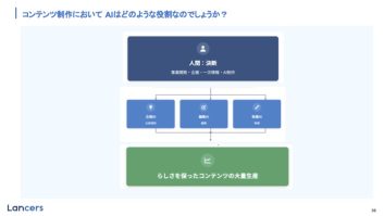 AIはコンテンツ制作における”「企画・編集・執筆」の各工程を高速化し、大量のアイデアや下書きを提示する役割を担います”。例えば1時間のインタビューを文字起こしし、その内容を3パターンの記事に整理するといった作業も対応可能です。