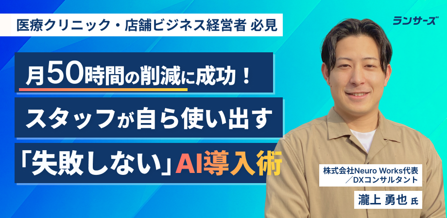 本記事では、AIコンサルタントの瀧上さん支援のもと、院内の課題に合わせて身近なAIを取り入れ、週50時間の削減とスタッフが自らAI活用を進める環境につながった取り組みをご紹介します。