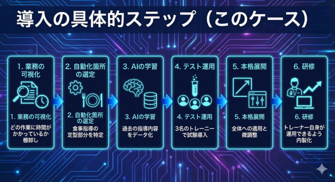 - 高山さん自身が業務を体験し、食事指導をAIで仕組み化